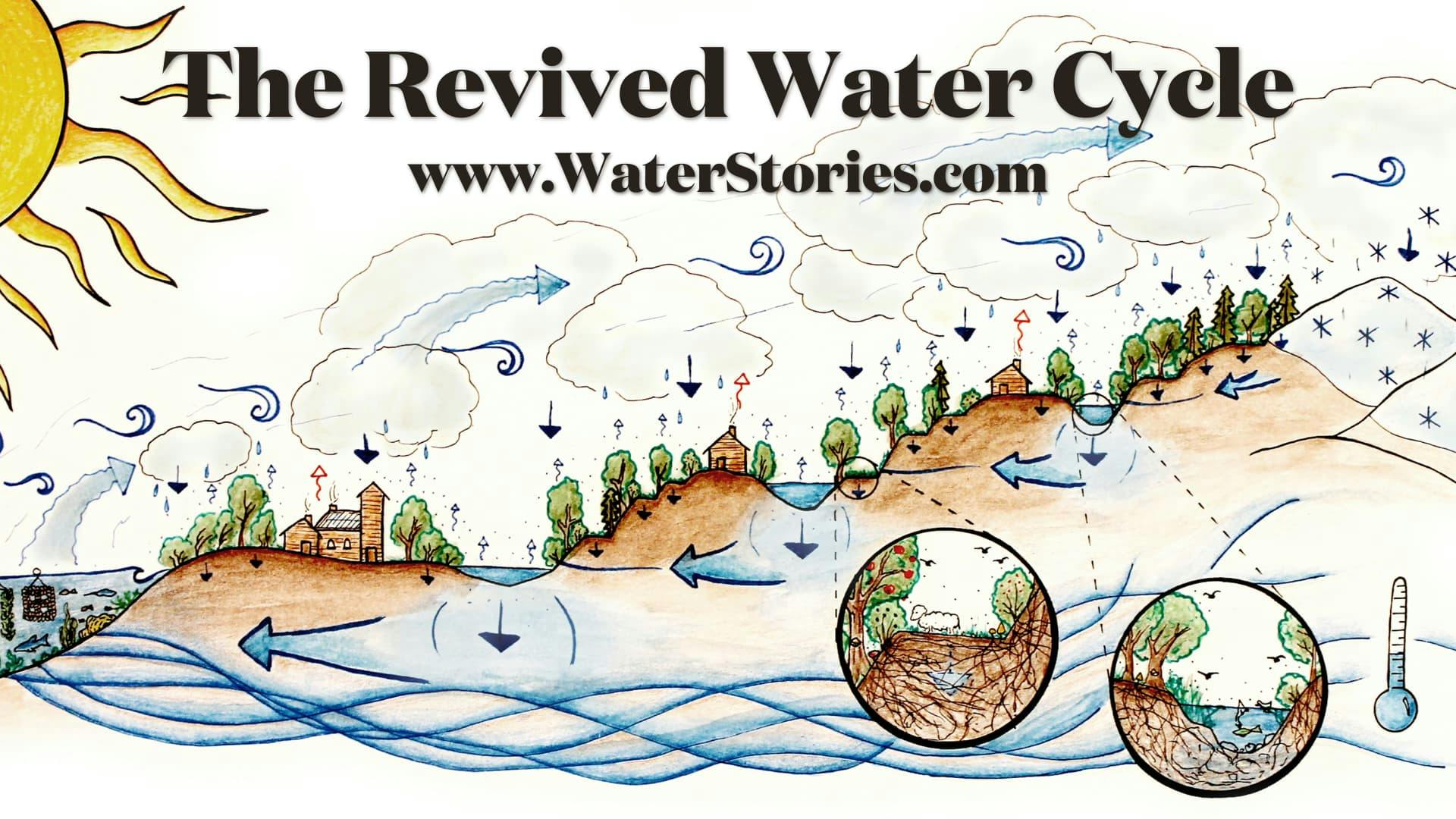 You can see how the springs, creeks, and rivers mirror our own veins. But it’s not just the water in and on the ground but also in the air, the atmospheric rivers of water vapor that function as the arteries, with the forests as the lungs. Water moves through the Earth’s circulatory system, bringing life to land. Much like our own body, when this system is disrupted, damage and loss is inevitable. When the water cycle is fully functioning we have a healthy environment. This is the Full Water Cycle.